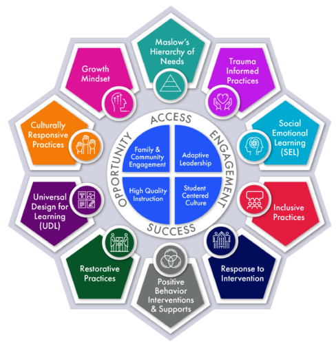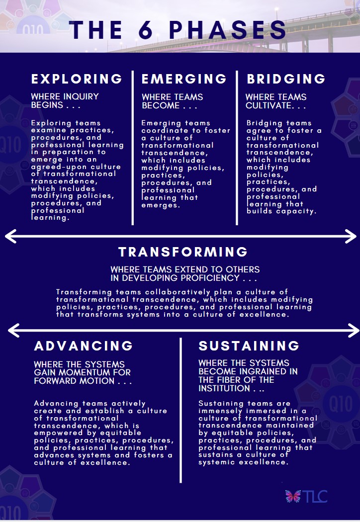 The Quantum in Q10 refers to an integration of frameworks, practices, and theories designed to create a system that positively and greatly impacts and addresses the diverse needs of all students.